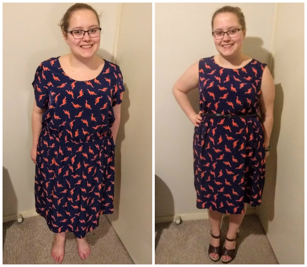 I can also achieve a similar look to the original dress just by adding a belt.