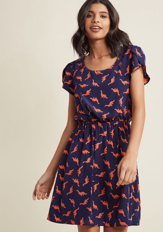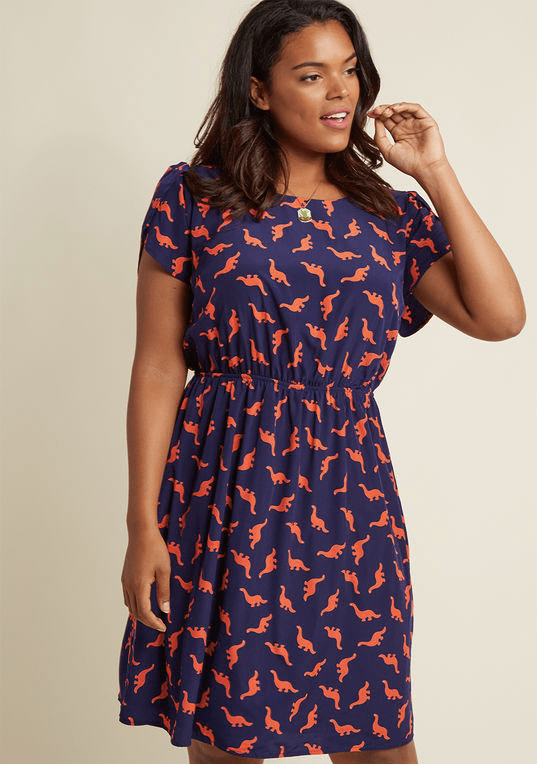 For reference, I did some research and found that the dress was most likely purchased from ModCloth and is still available if you love this print as much as I do. The dress isn’t a fitted style, however it is definitely is not meant to look the way that it does on me!