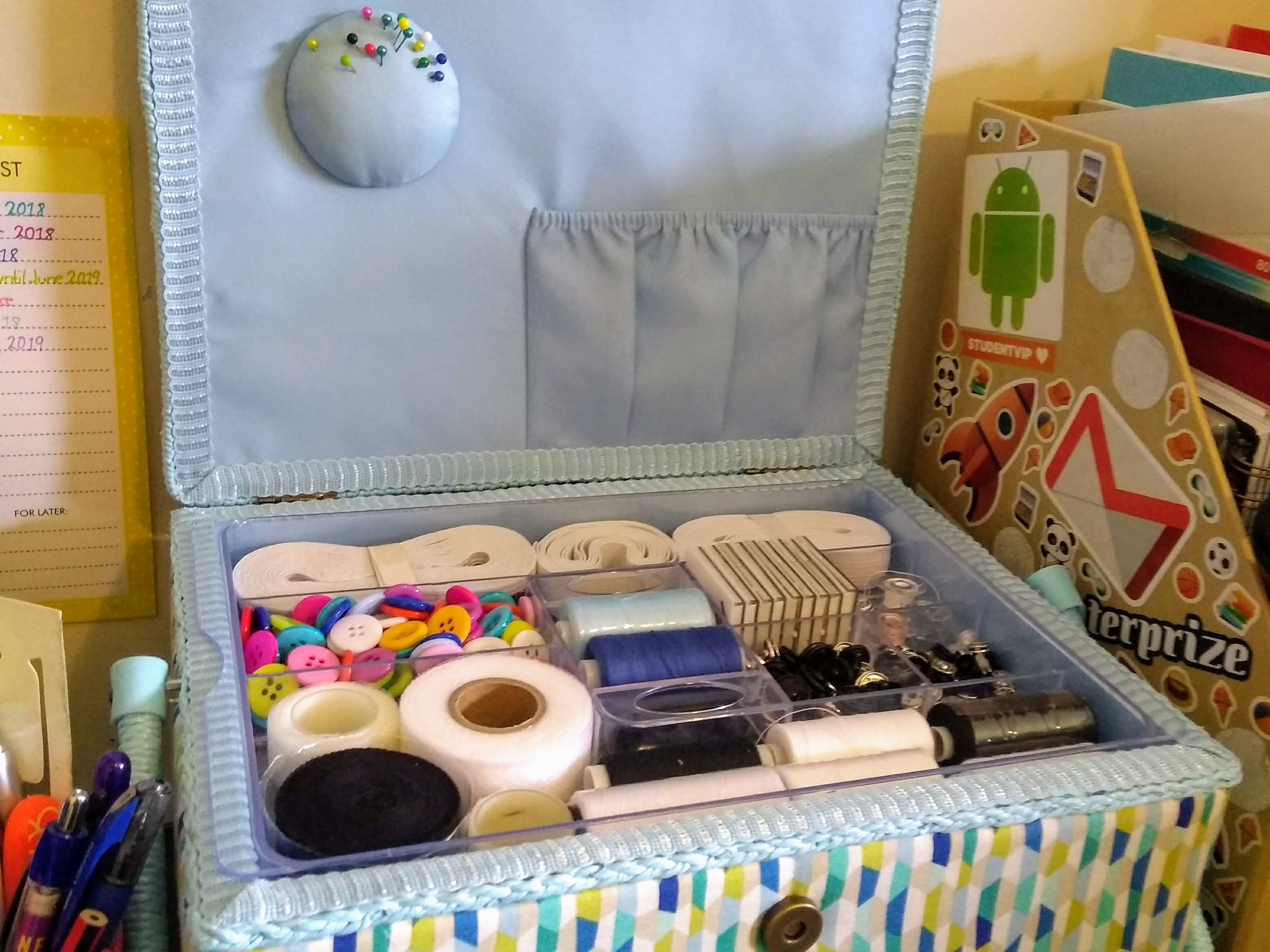 The final September item was a gift for my birthday from my partner’s Mum, which is something I have needed for a long time, a new sewing box! It was nice to finally be able to replace the container I had just been throwing things in for years, and actually have compartments for everything! She also included needles, press studs, thread, and other haberdashery in the box, which I always need more of!