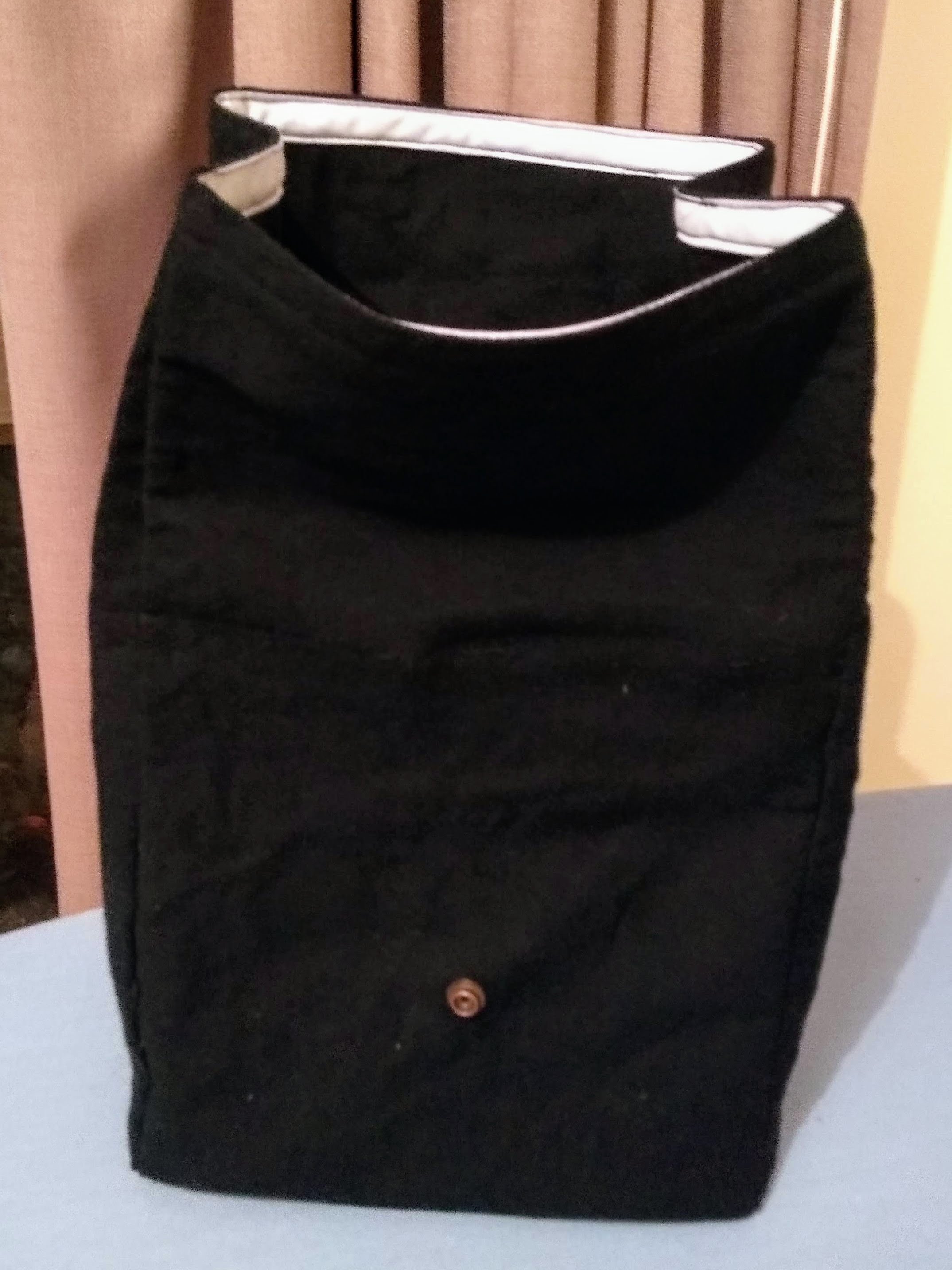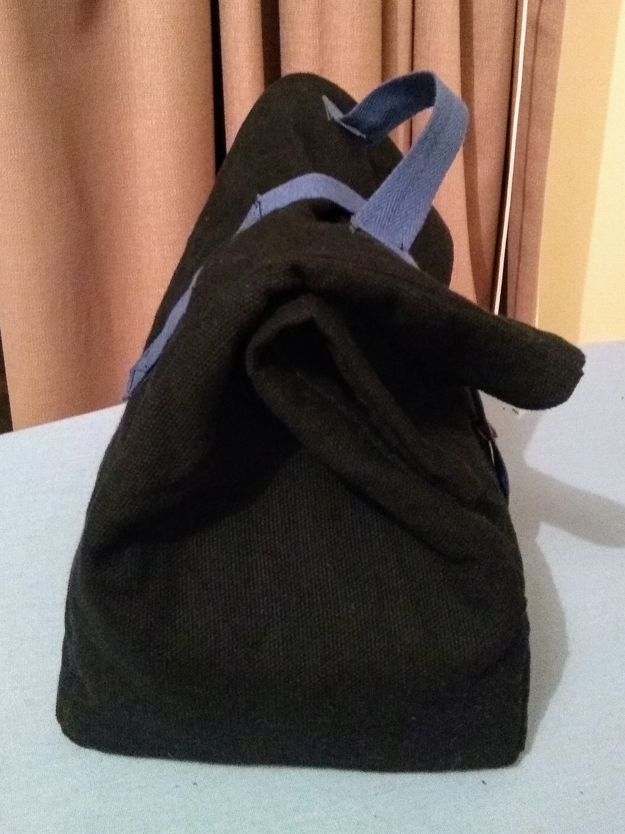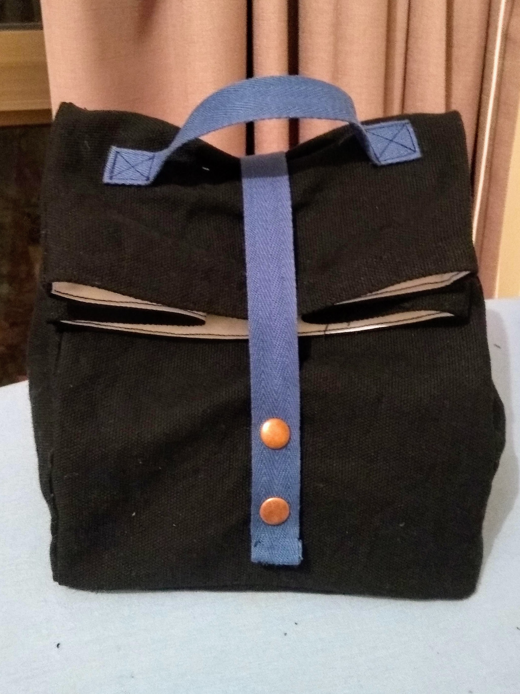 I used cotton heading tape for the bag handle and closure strap. The bag closes with press studs.