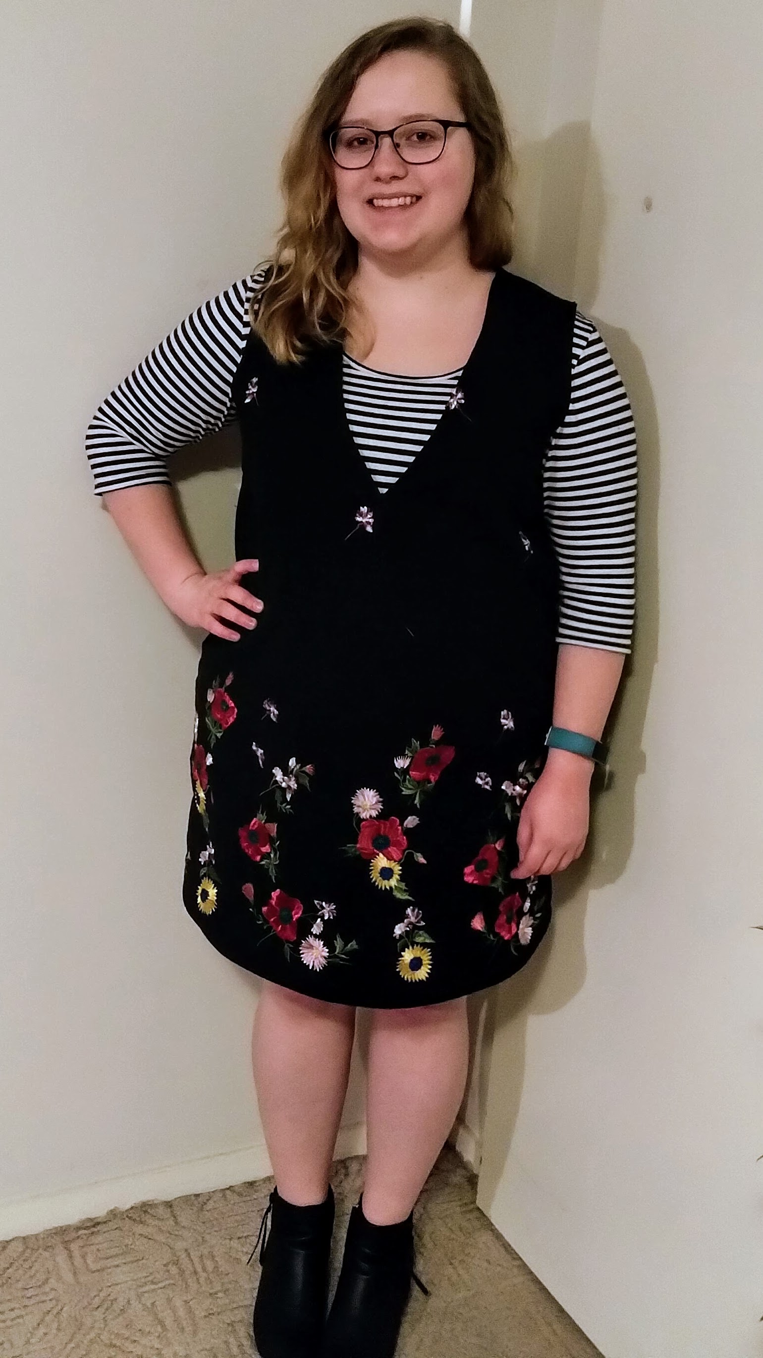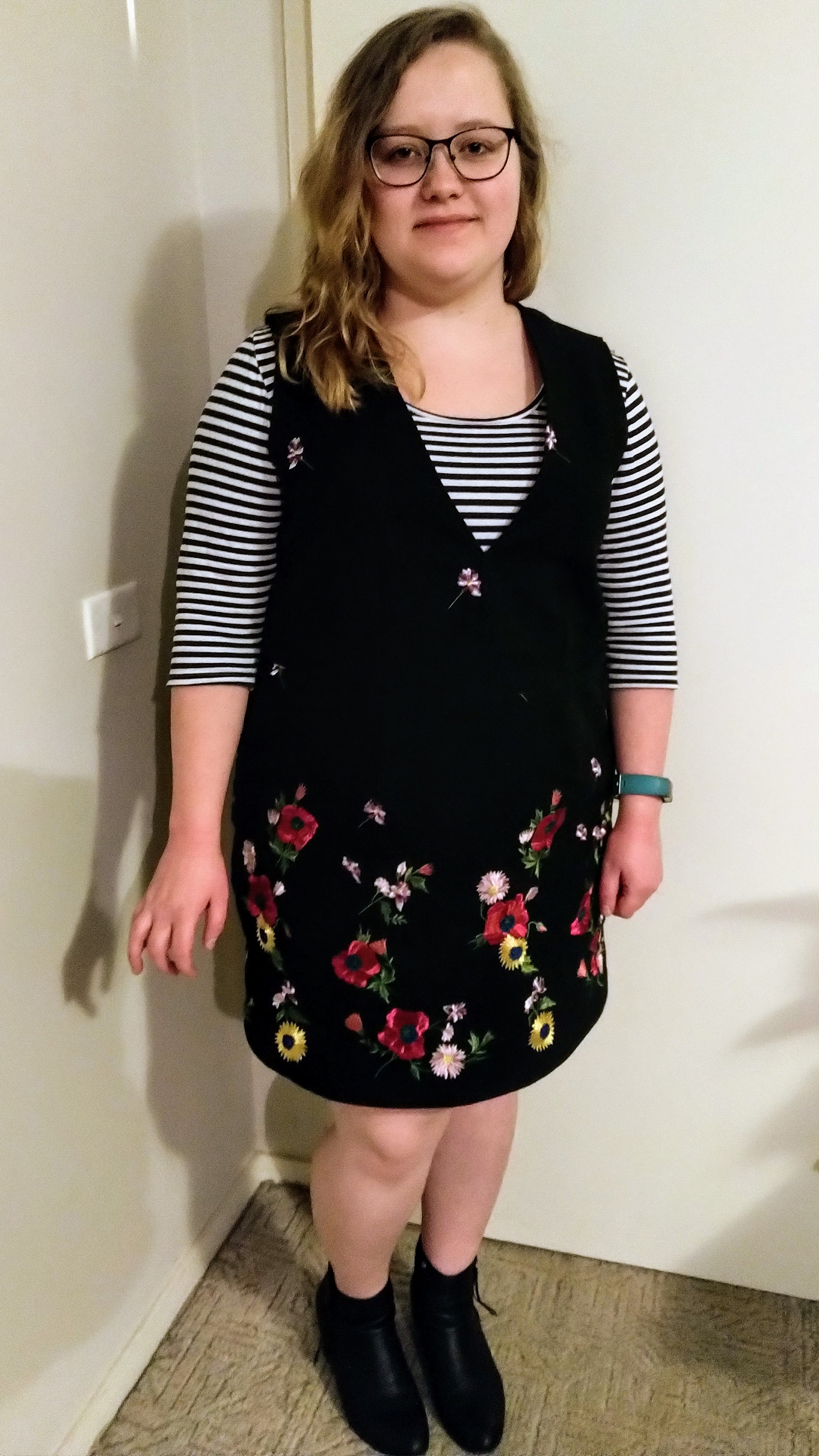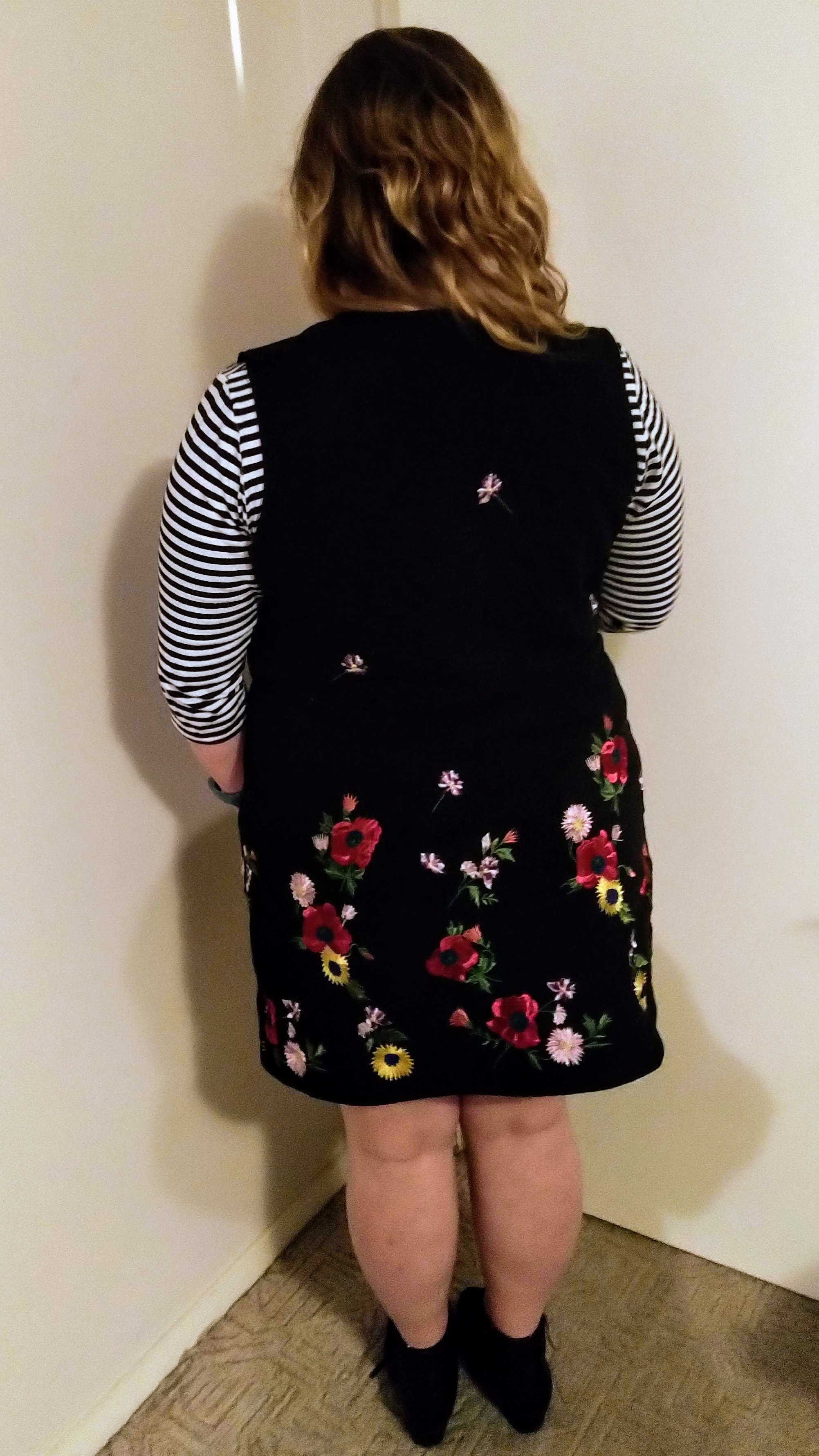 In June I also made my first Seamwork Dani Pinafore. My pinafore was made from a floral embroidered black canvas fabric from Spotlight, the same fabric used to make my lunch bag.