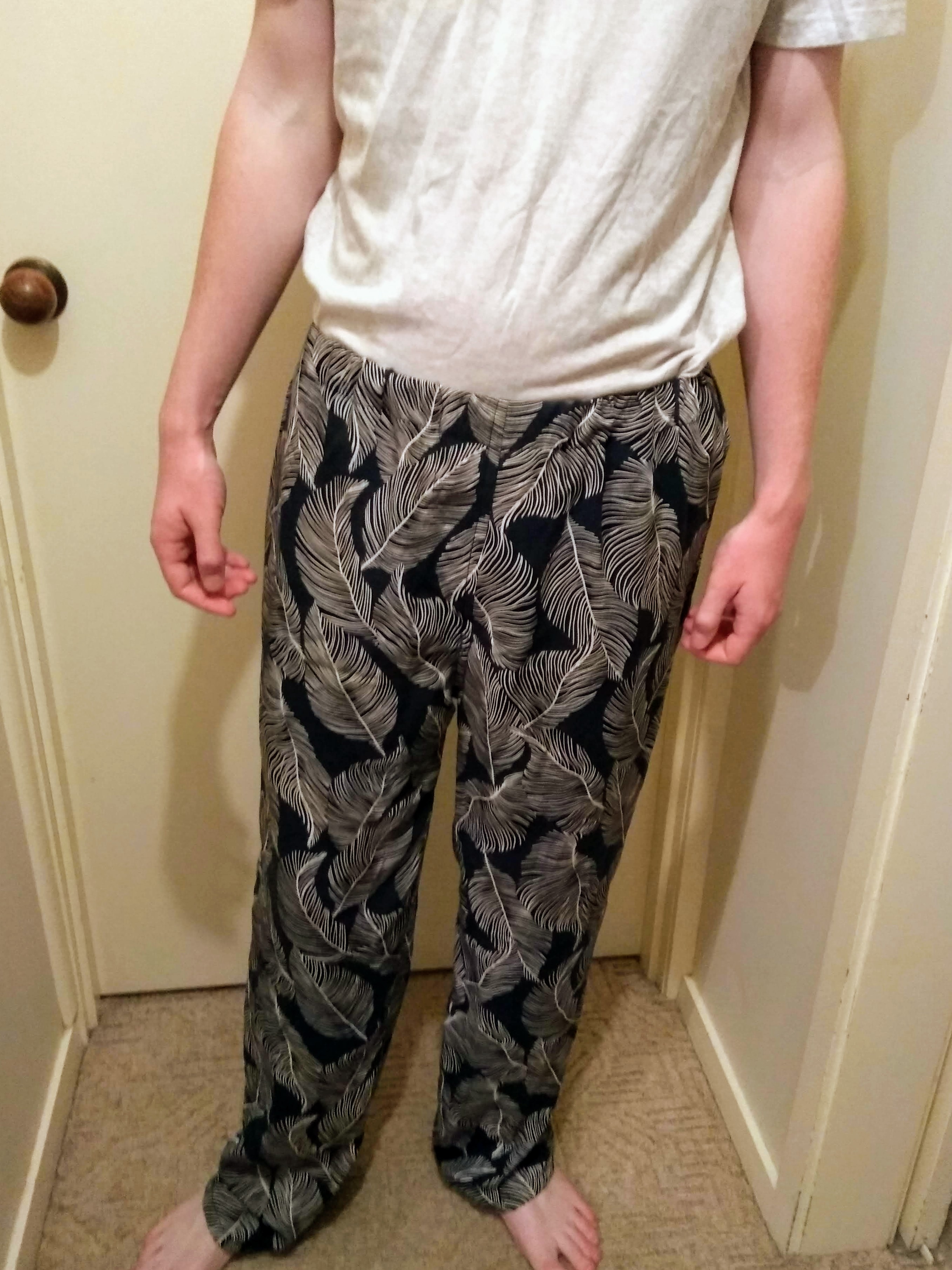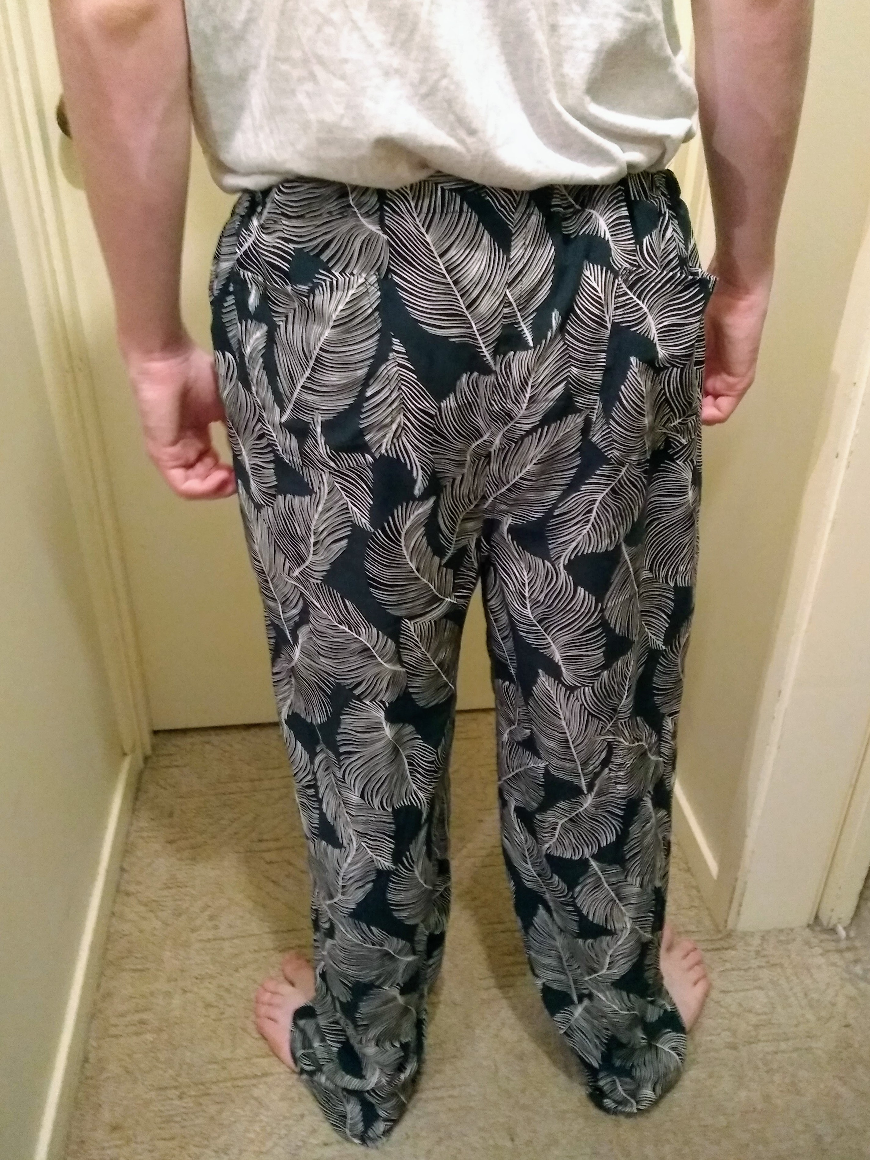 I really enjoyed making this pattern, I found the pattern instructions easy to follow and they were quite a quick project. I used a leaf print rayon from Spotlight because my partner really liked how the fabric felt on a pair of rayon pants I own and wanted a pair of his own made from rayon.